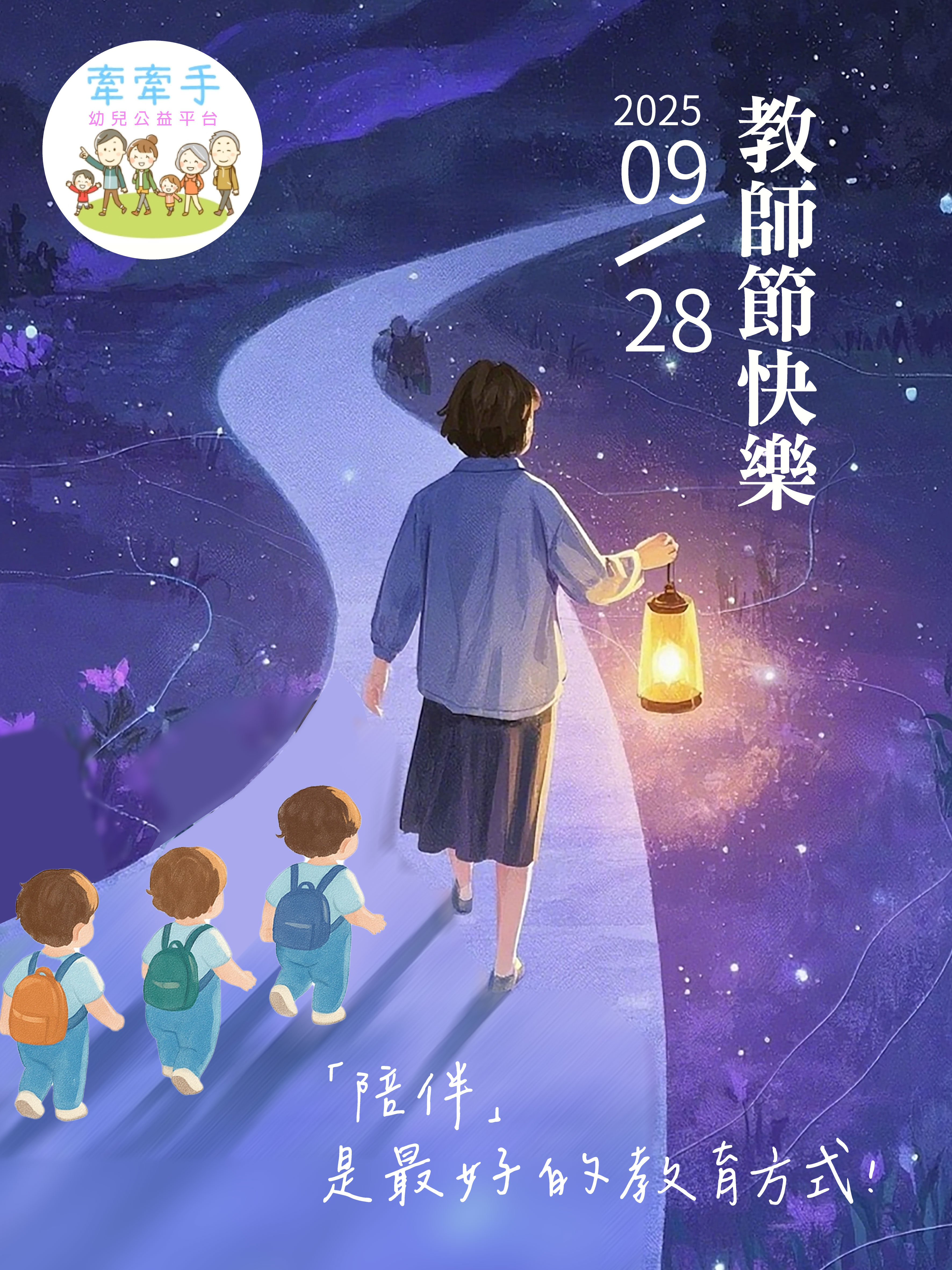 「牽牽手幼兒公益平台-教師節卡片」的設計理念以「幼兒+老師,學習道路上,指引明燈」為核心意象,象徵老師在幼兒成長過程中的關鍵角色。設計上,以溫馨、純真的畫風展現孩子牽著老師的手,象徵老師不僅是知識的傳遞者,更是孩子人生道路上的引導者與守護者。卡片中運用柔和的色彩與簡單溫暖的線條,呈現出幼兒天真的眼神與老師慈愛的陪伴,營造出一種安心與信任的氛圍。整體視覺強調「牽手同行」,傳遞感恩之情,也呼應「公益平台」對教育關懷的初衷。透過這張卡片,讓孩子們表達對老師的感謝與敬愛,也讓社會看見教育工作者在幼兒發展中的重要性,進一步喚起對幼兒教育的重視與支持。